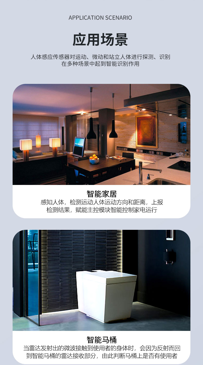 FR58L4LS-2020M-2 簡稱 2020M 是飛睿智能推出的高性能低功耗 5.8G 雷達傳感器,雷達模塊利用多普勒原理,通過天線發(fā)射高頻電磁波并接收初期反射波,以此判斷覆蓋范圍內(nèi)物體的移動,給出相應(yīng)電信號。模塊尺寸 20*20MM,該模塊集成了 5.8G 微波電路、中頻放大電路以及信號處理器,集成度高且生產(chǎn)一致性好,模塊內(nèi)置32 位 MCU 和收發(fā)天線,大大提高了傳感器的感應(yīng)性能。雷達模塊感應(yīng)距離遠、角度廣、無死區(qū)、透鏡和透鏡老化問題不受溫度、濕度、氣流、灰塵、噪聲、亮暗等影響。模塊內(nèi)植入濾雨樹葉算法,能過濾掉雨水樹葉的誤觸發(fā),性能穩(wěn)定,廣泛應(yīng)用于智慧照明、智慧安防等多個領(lǐng)域。