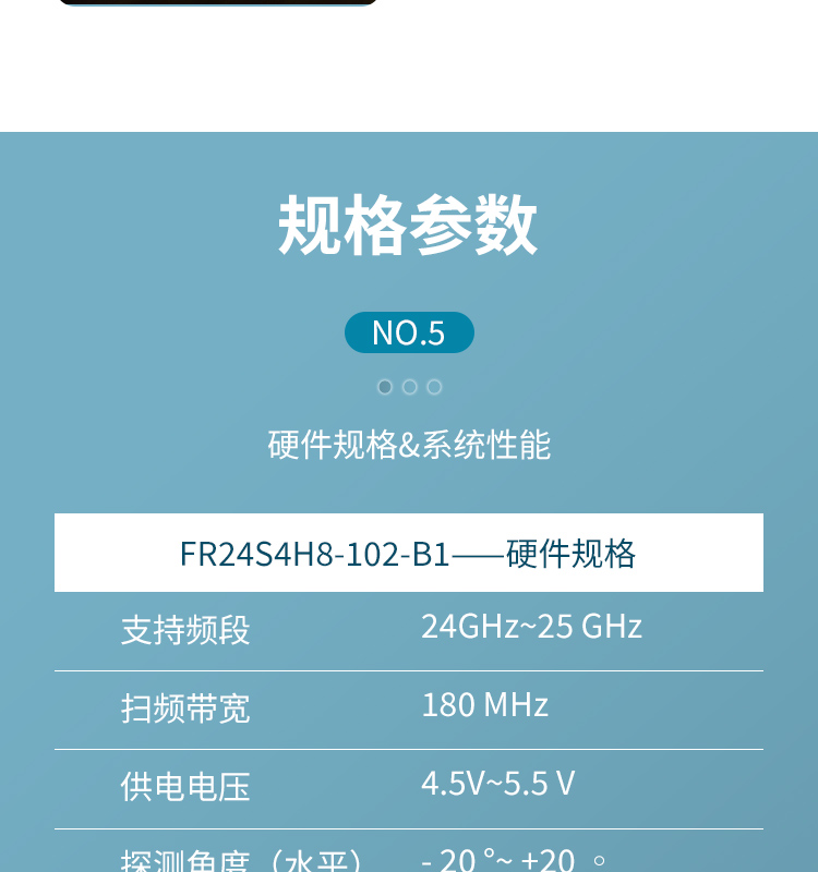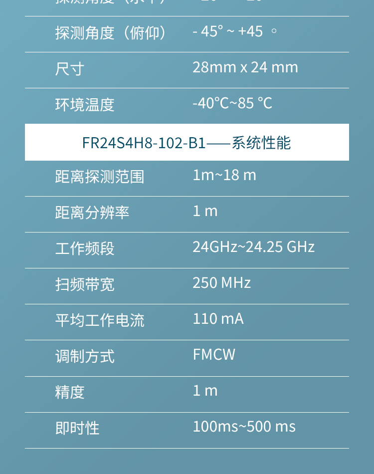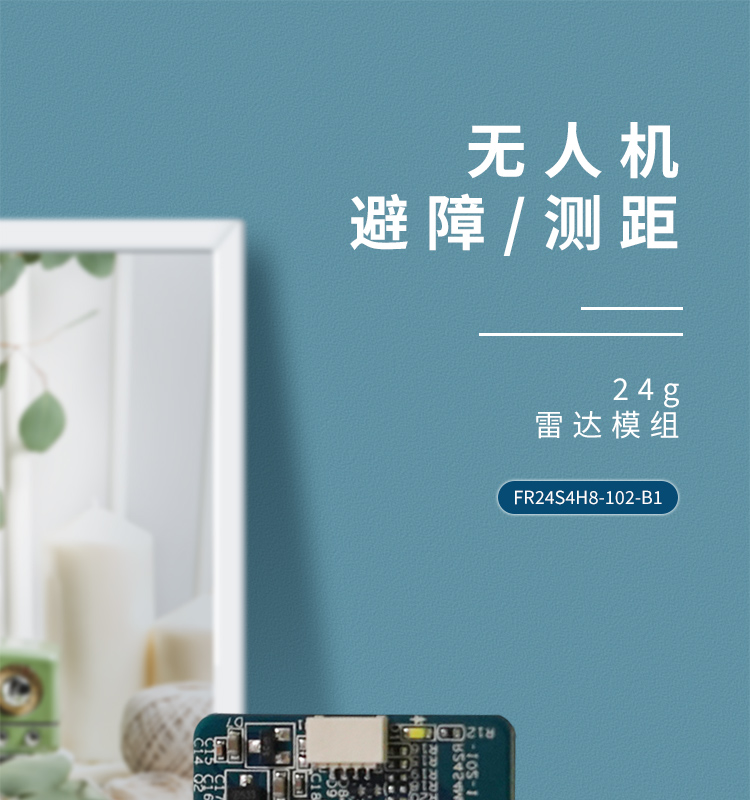 FR24S4H8-102-B1 簡(jiǎn)稱 102 是飛睿智能設(shè)計(jì)的無人機(jī)避障傳感器,包含 24G 雷達(dá)傳感器硬件和智能算法固件。FR24S4H8-102-B1 硬件搭載高性能 24GHz 一發(fā)一收天線和外圍電路;采用毫米波雷達(dá)距離測(cè)量技術(shù)和高性能芯片先進(jìn)的專有信號(hào)處理技術(shù)。